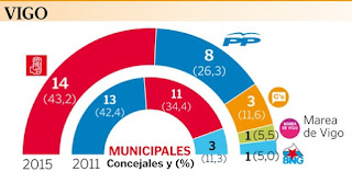 El pasado mes de mayo Ciudadanos se presentaba por primera vez a unas municipales en Galicia, y aunque lo hizo en muy pocos municipios consiguió 28.319 votos (y 16 concejales). En Lugo capital, por ejemplo, alcanzó el 7,4% de los votos (y 2 concejales). UPyD, en cambio, tuvo un bajón considerable, y consiguió muy pocos votos (3.123) en las 7 ciudades en las que presentó lista.